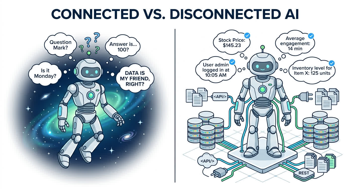 When a customer asks about their order status, refund eligibility, or account balance, does your AI query the database where that information lives? Or does it search a knowledge base and generate a plausible response?